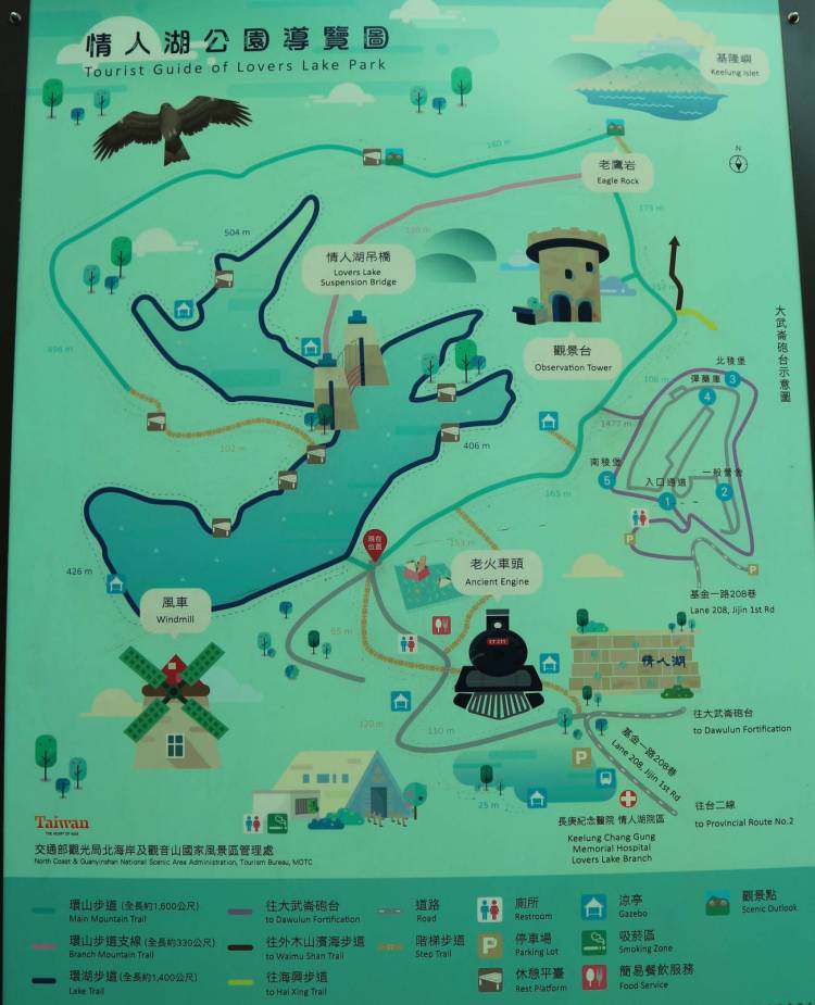 After crossing the 情人湖吊橋 (Lovers’ Lake suspension bridge)…