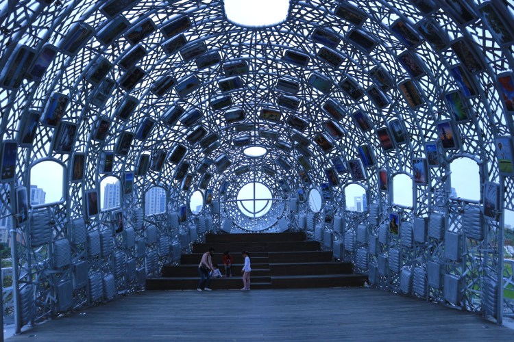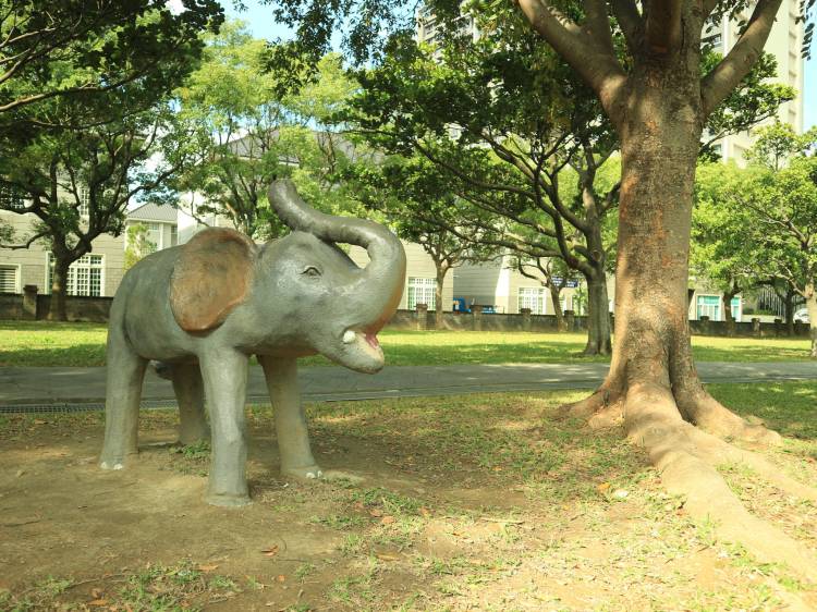 The next day I decided to visit 青塘園 (Blue Pond Park), which is located on the opposite side. If 八德 (Bade) is east of 中壢 (Zhongli), then this park is to the west, towards the coast. The first thing that hits you in the face when you arrive is the incredibly weird yet wonderfully conspicuous 青瑭橋 (Blue Pond Bridge):