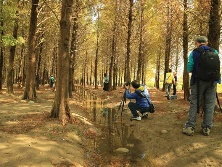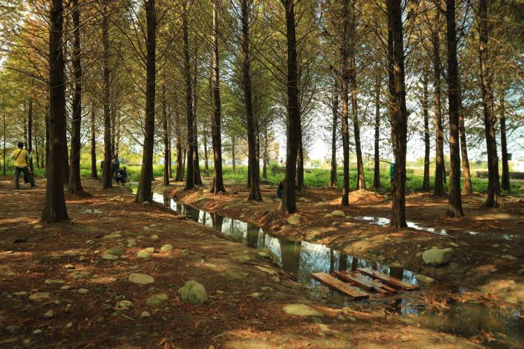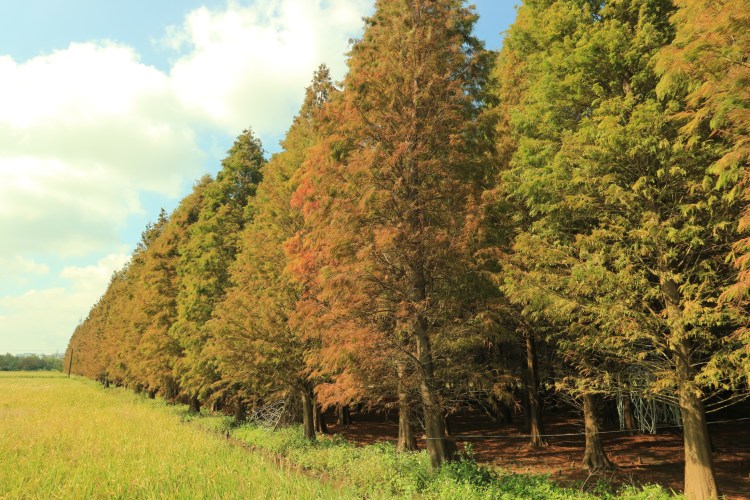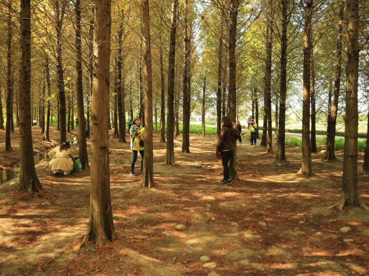 I am not sure how to start this, so I will begin with my favorite talking point – public transportation. I saw 落羽松森林 (Bald Cypress Forest) on Google Maps in 八德 (Bade) and decided – why the heck not. Of course, for me that’s just an excuse to try yet another bus line, this time it was 5098 from 中壢 (Zhongli) to 大溪 (Daxi). I got off half-way along the 龍南路 (Longnan Road), right next to a small lake. Before long I arrived at the forest: