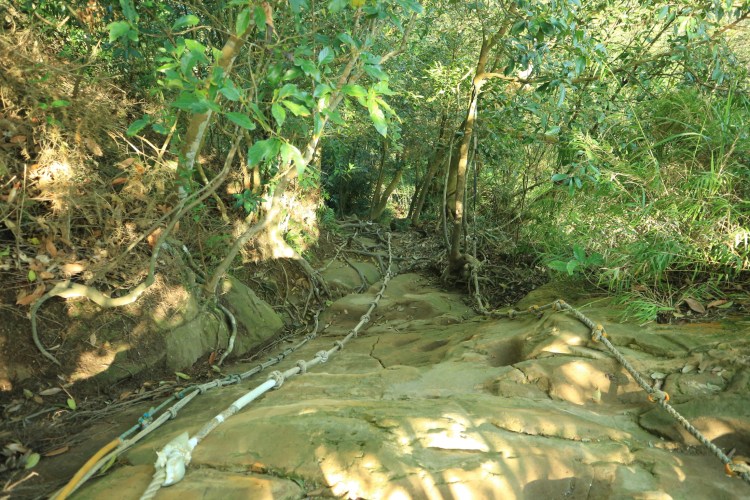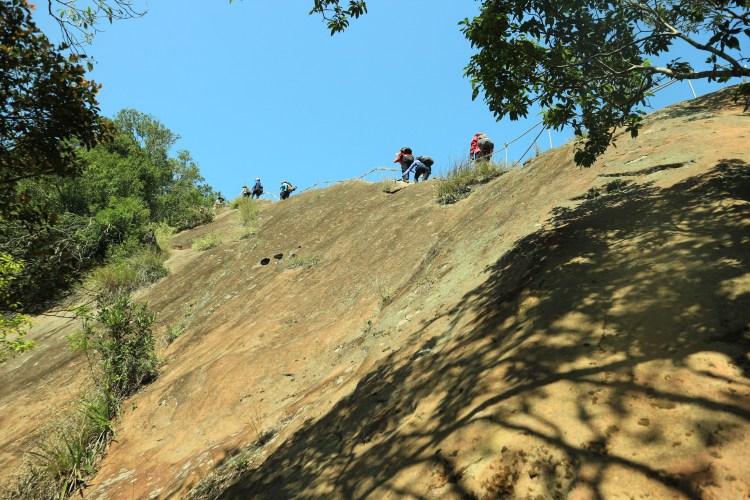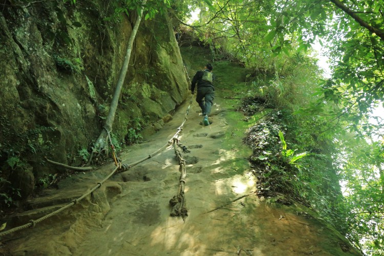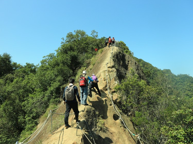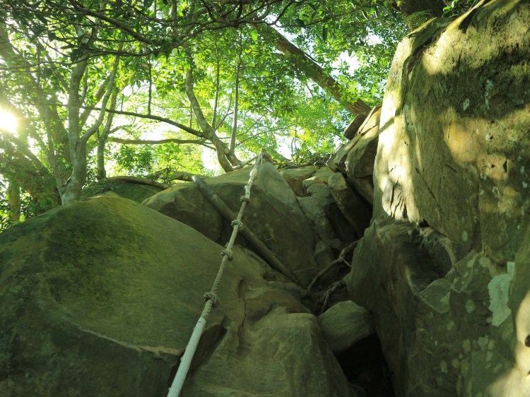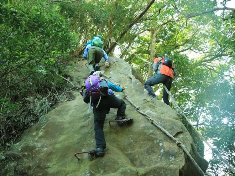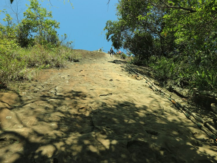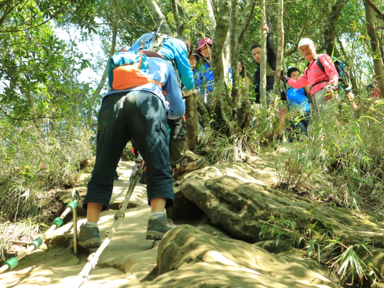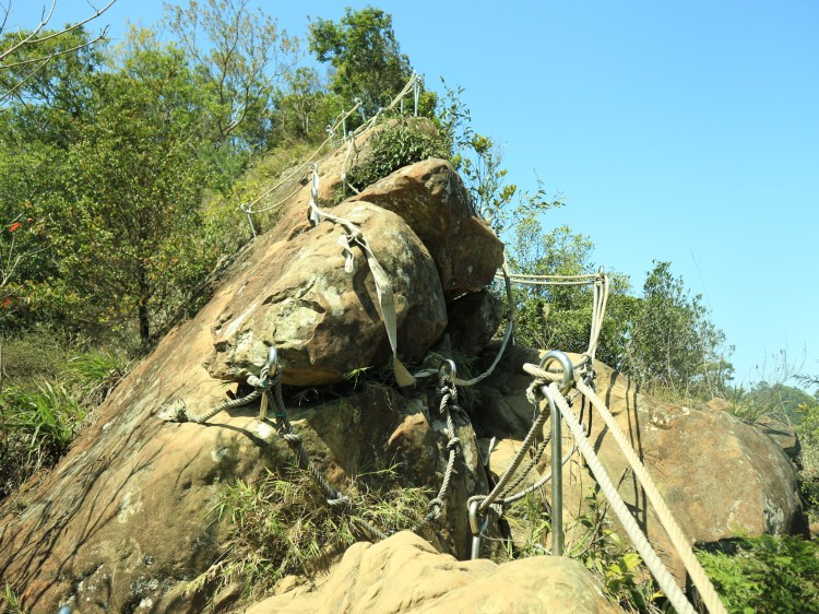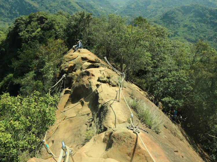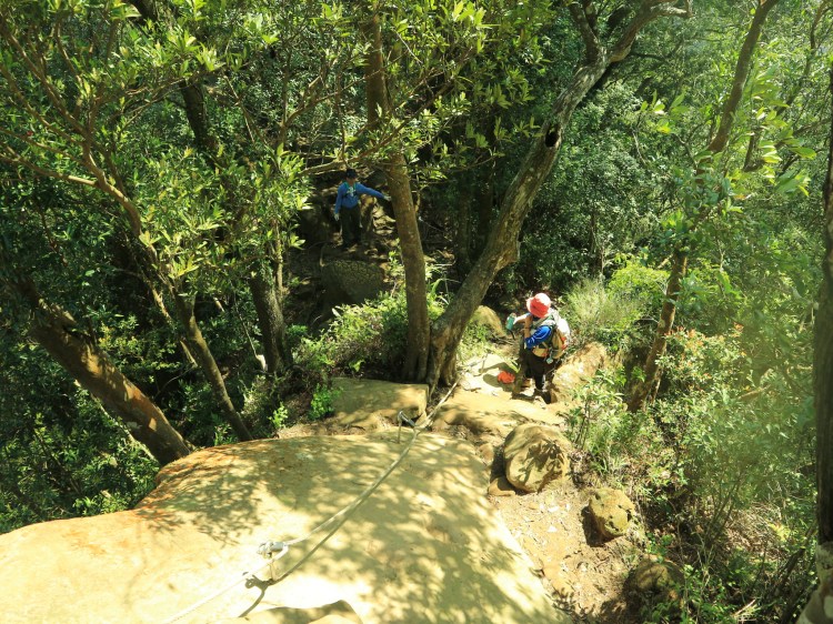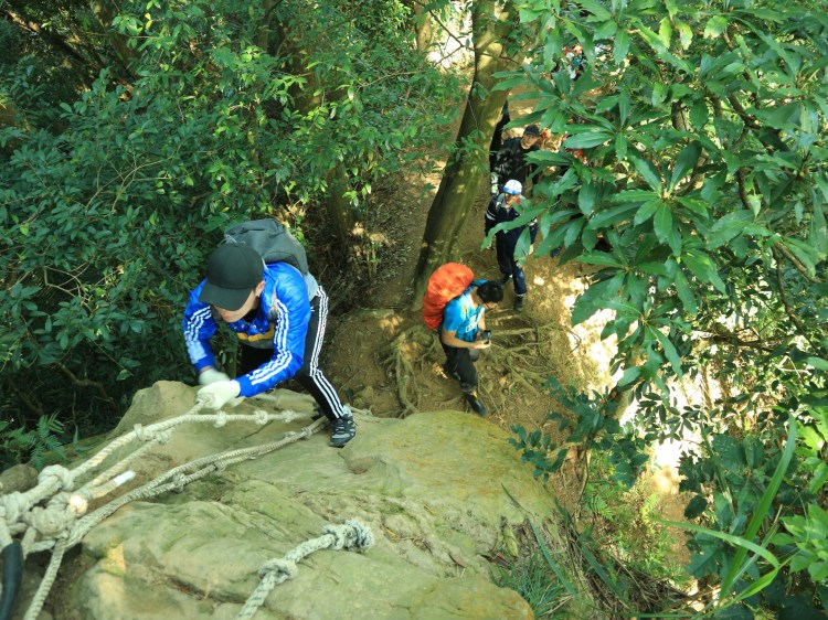 However, after a short descent back the climb continued, as we still hadn’t reached 五寮尖山. With its 639m it’s not terribly high, but as for climbing this is definitely the toughest part. From the sheer cliff-face to a junction just under the peak.