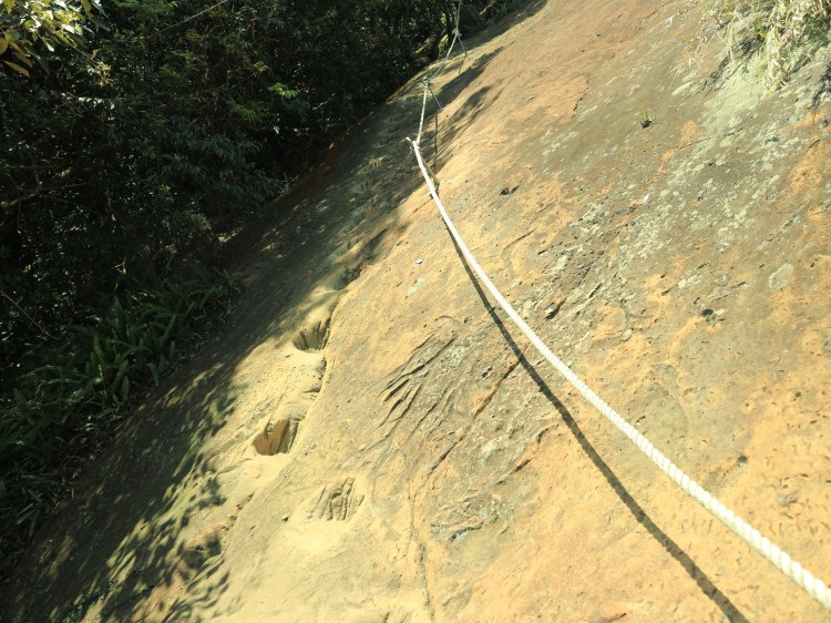 We quickly descended via another side-trail but I lost contact with Samuel’s group at the junction – the very same we had passed through on our way up. That proved to be fortunate, however, as I had intended to take the full recommended circuit (in bold red on the map), not the shortest route down. So back up again to the summit, but not before I dined again. A couple minutes spent on top were followed by an exciting ladder descent…