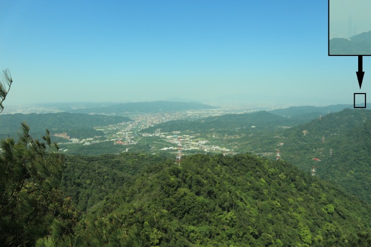 It was elevenish and no point standing in line, so I whipped out my store of rolled oats, mixed it with the soymilk purchased in the morning, and enjoyed some sunshine with views over most of Taipei in the fleeting background disappearing in hazy smog: